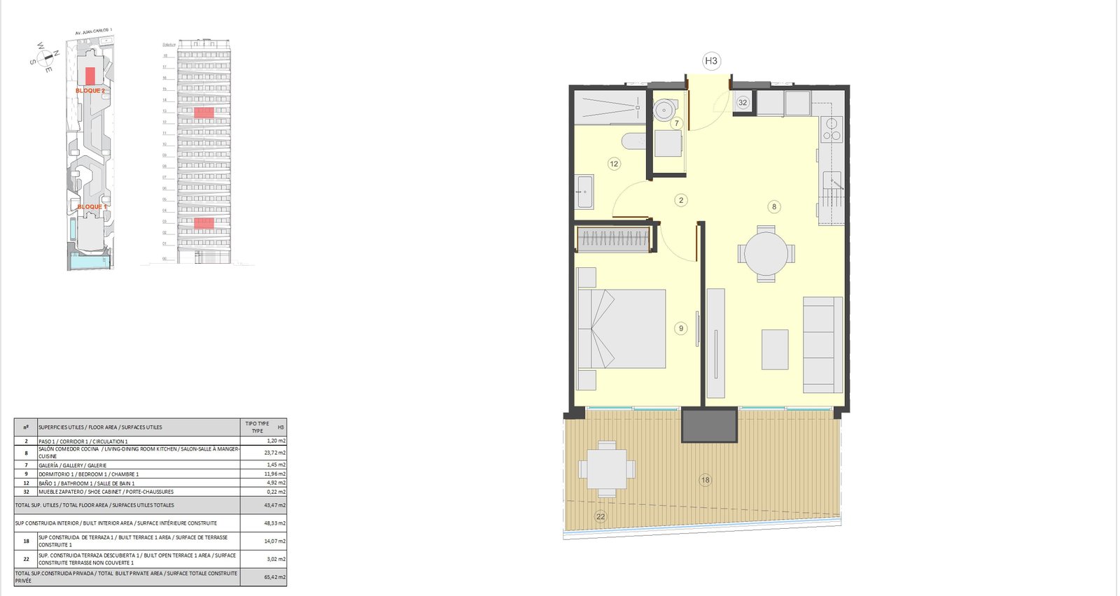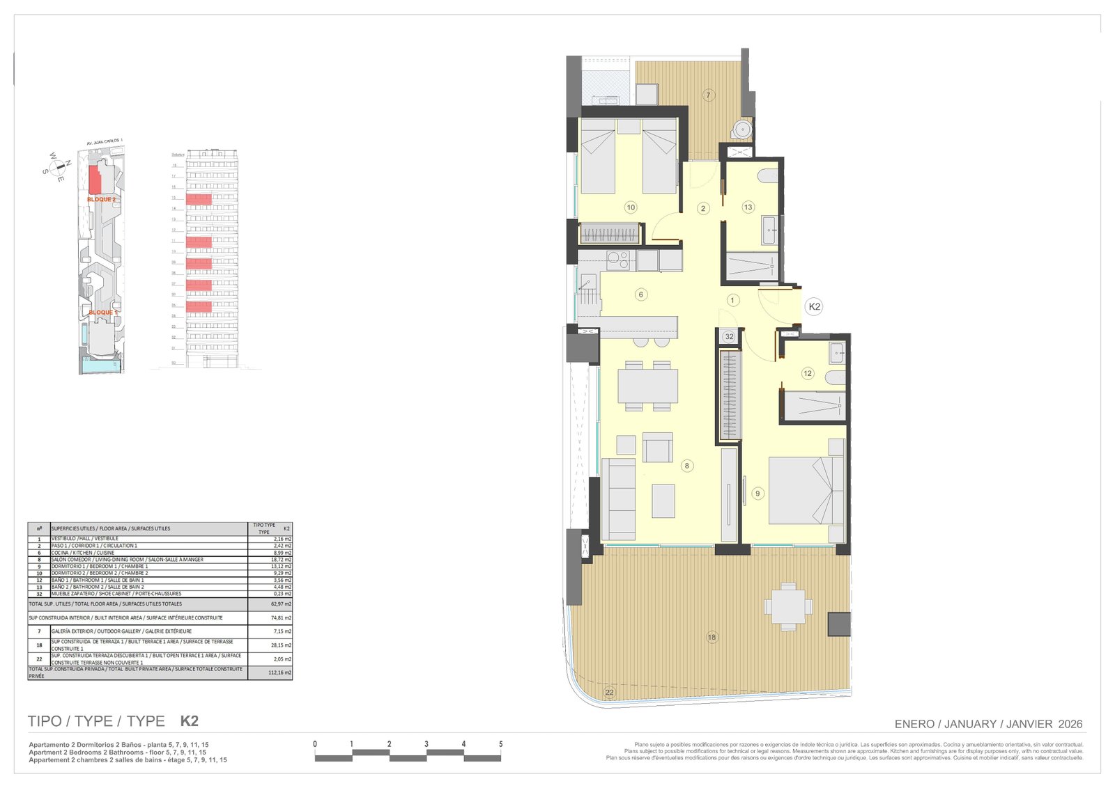 Osiedle obejmuje 72 nowoczesne nieruchomości, w tym eleganckie apartamenty oraz przestronne dwupoziomowe penthouse’y z prywatnymi solariami. Wiele mieszkań oferuje panoramiczne widoki na Morze Śródziemne, a część także na charakterystyczne słone jeziora Calpe, co tworzy wyjątkowe połączenie morza i natury.